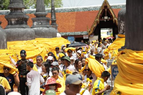 โอกาสนี้ นายอารี ไกรนรา ที่ปรึกษารองนายกรัฐมนตรี นางสาววันษา ลีหล้าน้อย นายกเหล่ากาชาดจังหวัด นายกองค์การบริหารส่วนจังหวัด นายกเทศมนตรีนครนครศรีธรรมราช นายอำเภอทั้ง 23 อำเภอ หัวหน้าส่วนราชการ ผู้แทนหน่วยงานภาครัฐและภาคเอกชน สมาคมชาวนครศรีธรรมราช ตลอดจนพี่น้องพุทธศาสนิกชนและประชาชน เข้าร่วมสืบสานประเพณีอันยิ่งใหญ่ของชาวเมืองนคร ร่วมแสดงพลังศรัทธาในวันมาฆบูชา และร่วมแห่ผ้าขึ้นธาตุเพื่อความเป็นสิริมงคลแก่ตนเองและครอบครัวเป็นจำนวนมาก